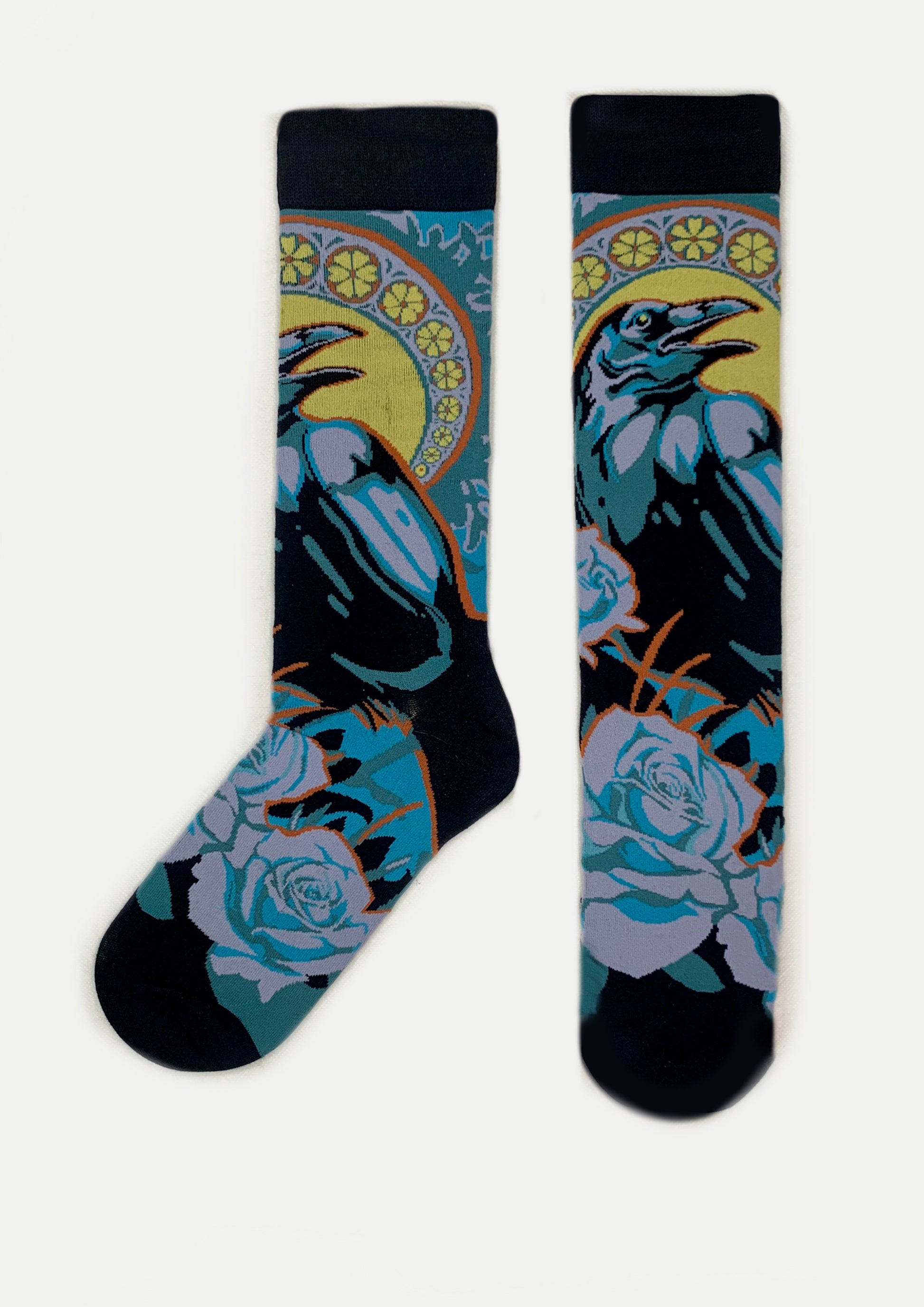 These mysterious and compelling art nouveau Raven design socks will brighten