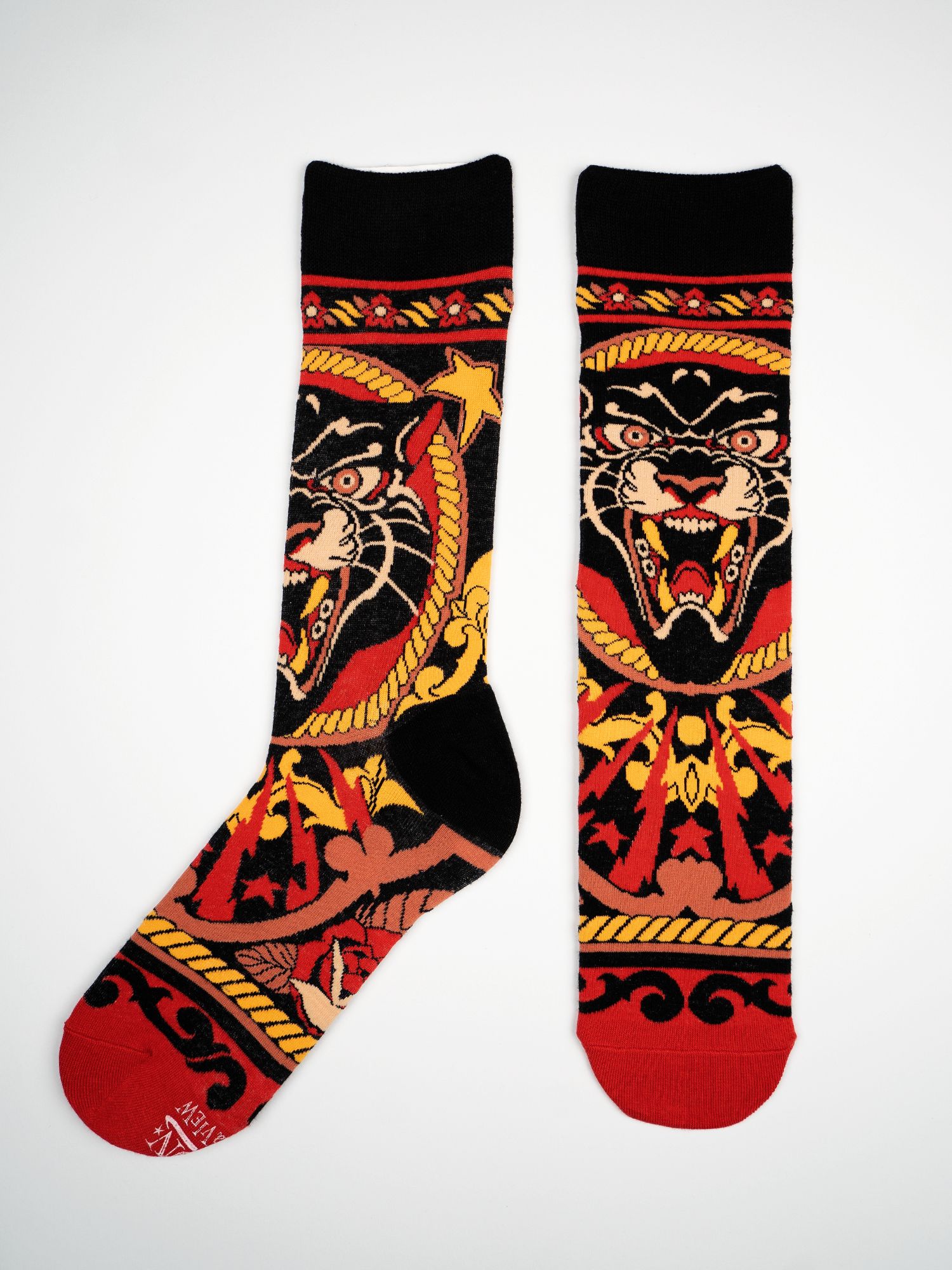 Nothing is as classic as a traditional tattoo panther, worn by hundreds of thousands of tattooed folks all over the world. Now you can throw em on your ankles and wear them with pride. These comfortable high quality cotton socks will bring you good luck! For Sure!